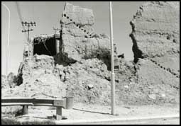 هذه المباني الخربة.. والنصب الترابية الواقفة على الطرق كاطلال شاهدة على الماضي.اصبحت خطراً يهدد حياة المارة وقائدي السيارات الذين يسلكون هذه الطرق.