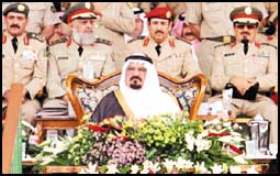 وأضاف قائلا: كما كان للقوات المسلحة فرحة بل وقفة وطنية أخرى بمناسبة مرور أربعين عاما على تولي سمو الأمير سلطان بن عبدالعزيز وزارة الدفاع والطيران.. ولقد شهدت قواتنا المسلحة خلال الاربعة عقود عهدا زاهرا من التطور والنماء وفي جميع المجالات العسكرية فأقمتم المدن العسكرية والقواعد الجوية والبحرية الحديثة في مختلف مناطق المملكة.