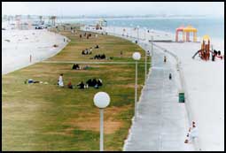 أثناء جولتنا في رأس تنورة قمنا بزيارة محافظها الأستاذ عبدالله بن سعد العثمان حيث استقبلنا وأوضح لنا أن عدد سكان رأس تنورة يبلغ نحو 65 ألف نسمة كما أوضح أن رأس تنورة تنفذ العديد من المشاريع الخدمية ومنها كورنيش محافظة رأس تنورة الذي يعتبر من أجمل الواجهات البحرية في المنطقة الشرقية.. موضحاً أنه تم افتتاحه رسمياً في يوم الثلاثاء الموافق 26/2/1418هـ من قبل صاحب السمو الملكي الأمير محمد بن فهد بن عبدالعزيز أمير المنطقة الشرقية والكورنيش يشتمل على واجهة بحرية بطول 6 كيلو مترات وعرض يتراوح بين 125 و250 متراً ويحتوي على طريق مزدوج بعرض 25 متراً مع 7 مواقف للسيارات وعلى امتداد الطريق الساحلي مسطحات خضراء بعرض 20 متراً محددة بممرات المشاة مع حدائق منارة ومزودة بمجموعات من ألعاب الأطفال والبوفيهات ودورات مياه.
