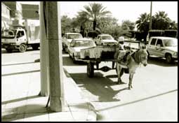 يبدو أن قائد هذا الحمار أكثر احتراماً لإشارات وتعاليم المرور ولكن لا أعلم هل تسمح تعاليم المرور بسير هذه العربة في الشوارع الرئيسة مع ما تسببه من ازدح.........