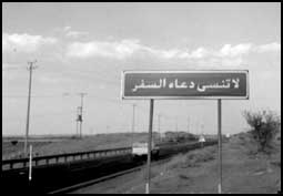 لوحة وضعت بجوار الطريق تنبيهاً للمسافرين براً بأهمية دعاء السفر.. لأنه من الأذكار المستحبة لكل مسافر