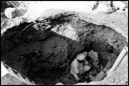 السقوط في الهاوية بانتظار المارين بهذه الحفرة بأحد شوارع القصب بعد حفرها وبقائها أسبوعاً بلا سياج!!