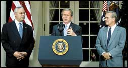 اتهمت ادارة بوش إيران «بإيواء» محاربي القاعدة الفارين من أفغانستان، كما ضمتها أيضا إلى «محور الشر»، واستنكر الرئيس بوش «السياسات الهدامة» للحكومة الإي.........