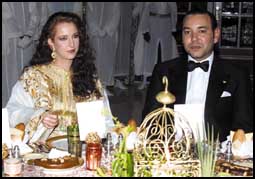 العاهل المغربي الملك محمد الخامس وحرمه الّلا سلمى في أول ظهور للملكة يحضران حفل العشاء الذي نظم على شرف افتتاح مهرجان مراكش السنوي للسينما في دورته ال.........