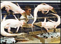 الجنوب إفريقي هيرمان ايراسموس يشرف على عملية شي أربعة تماسيح صغيرة ضمن فعاليات يوم التراث الذي انطلق أمس.