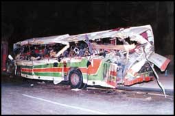 توفي سبعة عشر شخصا واصيب اثنان وعشرون اخرون في حادث مروري على طريق ديراب بقرب الاقمار الصناعية وتعود تفاصيل الحادث الى ان ذلك نتج عن تصادم باص نقل ركاب كان متجها من الخرج الى مكة المكرمة مرورا بمدينة الرياض محملا ب (50) راكبا لأداء مناسك العمرة وشاحنة قادمة باتجاه الرياض محملة بالاتربة حيث التقيا بمنعطف خطر وجهاً لوجه وتم الاصطدام، هذا وقد باشر الحادث فرق الدوريات والمرور وكذلك خمس فرق من الدفاع المدني واثنتا عشرة فرقة اسعافية من الهلال الاحمر السعودي، كما تم نقل المصابين في الحادث والبالغ عددهم اثنين وعشرين شخصا لكل من مستشفى الايمان ومستشفى الأمير سلمان ومستشفى المزاحمية لتلقي العلاج من جراء الاصابات الناتجة عن الاصطدام كما تم نقل الوفيات لثلاجة الموتى في كل من مستشفى الشميسي ومستشفى الايمان ومستشفى المزاحمية. من جانب اخر باشر الحادث العديد من المسؤولين وعلى رأسهم مدير عام شرطة منطقة الرياض اللواء عبدالله بن سعد الشهراني الذي اوضح في تصريح ل «الجزيرة»: انه بتوجيه ومتابعة من صاحب السمو الملكي الأمير سلمان بن عبدالعزيز أمير منطقة الرياض تم مباشرة الحادث ومعاينته من كافة الجهات الامنية والطبية المختصة وقد وجّه سموه بالعناية بالمصابين ونقلهم للمستشفيات لتلقي العلاج اللازم والعناية بهم والاطمئنان على وضعهم الصحي كما وجّه سموه بالبحث عن اسباب الحادث وملابساته وابلاغه بها اولا بأول، وابان الشهراني ان سمو الأمير سلمان كان يتابع هذا الحادث لحظة بلحظة حتى تم الانتهاء من الحادث في موقعه وإزالة العوائق من الطريق وتوجيه المصابين الى المستشفيات حيث تم توجيه 9 حالات لمستشفى المزاحمية و4 حالات لمستشفى الأمير سلمان و8 حالات لمستشفى الايمان العام وحالة واحدة لمجمع الرياض الطبي كما تم توزيع الوفيات على المستشفيات لاجراء اللازم حيالها الى حين الدفن رحمهم الله.