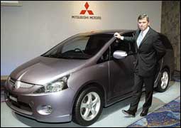 رئيس شركة ميتسوبيشي يعرض السيارة الجديدة «غرانديس» Grandis خلال حفل كبير أقيم بهذه المناسبة.. وتتوقع الشركة لسيارتها الجديدة منافسة قوية في سوق السيار.........