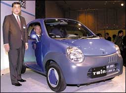 رئيس شركة سوزوكي اليابانية للسيارات والدراجات النارية ونائبه يقدمان السيارة الصغيرة التي أطلق عليها الاسم توين «Twin»، وبدأت الشركة في بيع سيارتها الج.........
