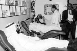 مجموعة من الأساتذة الأكاديميين يقومون بالتبرع بالدم وذلك خلال أسبوع التبرع بالدم..
