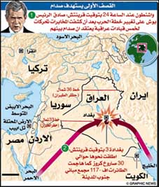 وقد اطلقت صفارات الإنذار مرتين في الكويت، وسط مخاوف من استخدام العراق لأسلحة كيميائية، رداً على القصف الاميركي.