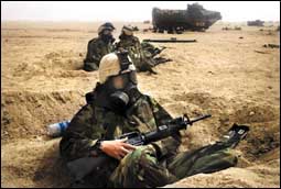 وأمس الأول الأربعاء قبل ساعات على بدء الحرب، استسلم 18 من حرس الحدود العراقيين للقوات الاميركية في صحراء شمال الكويت.