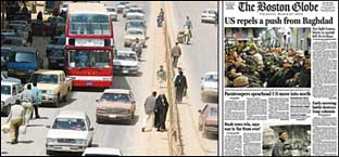 ابرزت الصحيفة ما سرب من معلومات عن وجود خلافات راديكالية في الرؤى بين خطط الرئيس بوش ونظيره رئيس الوزراء البريطاني توني بلير حول عراق ما بعد صدام.