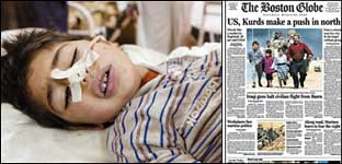 أفردت الصحيفة صفحات مخصصة لعرض الأخبار والرؤى حول الحرب على العراق، وتناولت على صدر صفحاتها قائلة «القوات الأمريكية البريطانية تقصف وزارة الاعلام» وعش.........