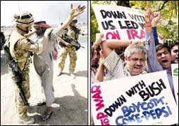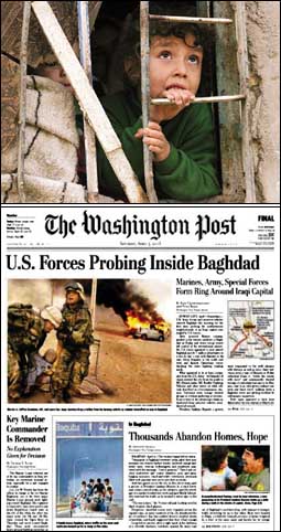 ~ ما زال المشهدان العسكري والسياسي للحرب الأمريكية البريطانية على العراق يشكلان المادة الأساسية للصحافة العالمية، فقد ركزت معظم الصحف على أنباء اقتراب.........