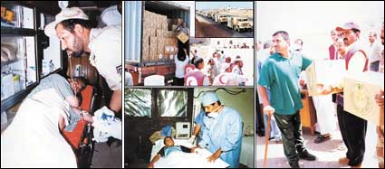 * المستشفى الميداني المتنقل يحتوي على كافة الأجهزة والمعدات الطبية الحديثة من مختبرات وأشعة.. حافلات محملة بالأدوية وبالمواد الغذائية التي أمر بها خاد.........