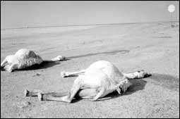 جملان لقيا حتفهما على أحد الطرق الرئيسة إثر اصطدام إحدى السيارات العابرة للطريق بهما.. فكم من نفس بريئة ذهبت نتيجة لحوادث الإبل السائبة.. فمتى تنتهي ه.........