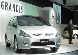 السيد رولف ايكروت رئيس مجلس إدارة شركة ميتسوبيشي اليابانية يقدم السيارة الميني فان الجديدة جرانديس (Grandis)