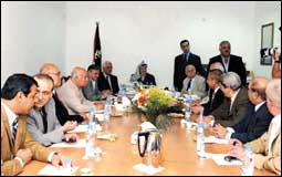 وأكد في مؤتمر صحفي أننا ننظر إلى هذا اليوم بايجابية كبيرة وان الجهد سيتحول الآن إلى تنفيذ الخارطة بما يؤدي إلى انهاء الاحتلال الاسرائيلي وإقامة الدولة.........
