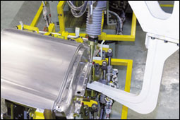 المقاومة الكهربائية المعتمدة غالبا في الإنتاج، ويفتح البابان الخلفيان الصغيران في الإتجاه المعاكس لوجهة السير، وتشكل تقنية التلحيم الإحتكاكي عملية توفير للطاقة الكهربائية ولكلفة التصنيع أيضا بسبب قوة المقاومة الكهربائية المفترض عبورها عبر الألومينيوم إضافة الى وسائل التبريد أيضا وثمن الوسائل التقنية اللازمة للتلحيم، ويتم التلحيم الإحتكاكي بتثبيت الوجهين اللازم تلحيمهما، في حين تمر وحدة أخرى تدور بسرعة لتحمية وجهي التلحيم قبل دفع عنصر بلاستيكي بينهما لإحكامها الواحد على الآخر. ومقارنة بوسائل التلحيم التقليدية يقل إستهلاك التقنية الجديدة بنحو 99 في المائة عند تلحيم الألومينيوم، ونحو 80 في المائة عند تلحيم الفولاذ، فالحاجة الكهربائية الوحيدة اللازمة مع التقنية الجديدة هي تلك التي تشغل العنصر المتحرك لتحمية وجهي المعدن قبل تمرير السائل اللاصق ثم ضغطهما معا بواسطة وسائل تقنية تقل كلفتها نحو 40 في المائة عن وسائل التلحيم التقليدية، والأخرى التي تثبت ألواح الألومينيوم بواسطة البراشم أو بالتثبيت الميكانيكي بمسامير ملتوية الرؤوس.