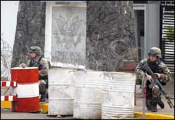 استهدف هجوم بقنبلة يدوية دورية أمريكية أمس الاثنين بوسط بغداد وقُتل جنديان أمريكيان.