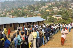 بدأ الناخبون الروانديون وعددهم نحو اربعة ملايين صباح أمس الادلاء بأصواتهم لانتخاب رئيس للبلاد في اول انتخابات تعددية منذ الاستقلال عن بلجيكا عام 1962م.........