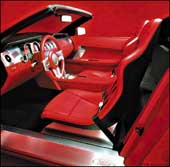 مصابيح موستانغ دائرية في مربعين أكبر منهما، وتتضمن المصابيح نظاماً متحركاً مثل عدسة آلة التصوير، لتركيز كثافة الضوء أو توسيعه، مع وصول النور عبر ألياف بصرية، وكانت فولفو Volvo عرضت أواخر العام 2001 تقنية إنارة مشابهة في نموذج SCC.