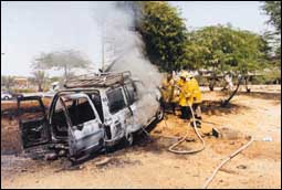 شب حريق صباح أمس في سيارة من نوع «لاندكروزر» وذلك على طريق الدمام «شمال الرياض» وقد هرعت فرقة من الدفاع المدني إلى موقع الحادث وتم إطفاء الحريق ولم ين.........