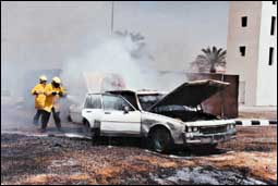 في حادثة غريبة من نوعها تعرضت وبدون سابق إنذار سيارة من نوع فورد تخص المواطن صالح بن حمد القشيميط لسقوط ماسورة تهوية للمجاري عليها بعد ان ارتطمت بمظلة.........