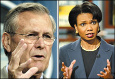 رامسفيلد ينفي احتمال أي انسحاب مبكر رايس: العراقيون (جاهزون) لتسريع عملية انتقال السلطة