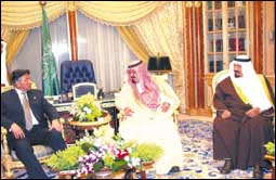 عقد صاحب السمو الملكي الأمير عبدالله بن عبد العزيز ولي العهد نائب رئيس مجلس الوزراء رئيس الحرس الوطني بقصر سموه بالرياض أمس جلسة مباحثات مع الرئيس الب.........