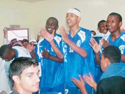 قدم إداري ناشئي الهلال بطل المملكة للناشئين لكرة القدم قاسم القاسم البطولة الزرقاء هدية للأمير بندر بن محمد المشرف على مدرسة الهلال الكروية .