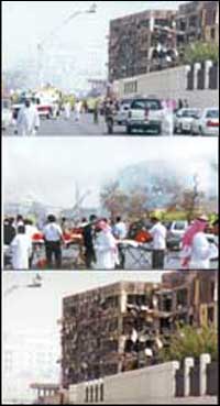 شوهدت أشلاء متناثرة من جثة الإرهابي المنتحر مقطعة قطعاً صغيرة على مسافات بعيدة.