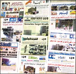تصدرت الصفحات الأولى للصحف السعودية الصادرة أمس احداث التفجير الذي وقع في مبنى إدارة المرور بشارع الوشم الذي أدى إلى وفاة وإصابة عدد كبير من رجال الأم.........