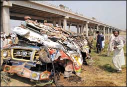 أعلن مصدر في الشرطة أن 37 شخصاً على الأقل قتلوا وجُرح ثمانية آخرون صباح أمس الأربعاء في حادث سقوط حافلة من على جسر وتحطمها في مجرى نهر جفت مياهه في إح.........