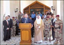 وأضاف أؤكد من جديد تصميمنا والتزامنا بمواصلة العمل مع الحكومة المؤقتة المتمسكة ببناء الديموقراطية على أساس مبادىء الحرية وحقوق الإنسان في العراق.