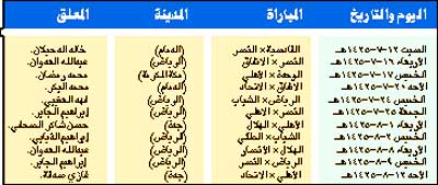 يقوم التلفزيون السعودي ممثلا بقناته الرياضية بنقل 12 مباراة من دوري خادم الحرمين الشريفين الذي ينطلق اليوم وسوف تكون مواجهة الهلال والطائي في الرياض أولى المباريات المنقولة وذلك بصوت المعلق (إبراهيم الجابر).. وفيما يلي المباريات المقرر نقلها خلال الفترة المقبلة: |