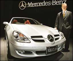 رئيس شركة دايملر كرايسلر يعرض الموديل الجديد لفئة SLK350 ويتميز الموديل بتصميمه الرياضي وهو بمقعدين فقط، قد جهز بمحرك ذي ست أسطوانات V6 سعته 3.5 ليتر.........