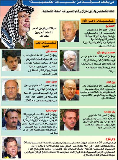 أما بالنسبة إلى قيادة فتح والتي كان عرفات يترأس لجنتها المركزية قد انتخبت هذه اللجنة أمس الخميس فاروق القدومي رئيس الدائرة السياسية في منظمة التحرير الفلسطينية رئيساً لها خلفاً لعرفات.