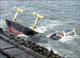 قال مسؤولون يابانيون بأن ستة بحارة على الأقل قتلوا أمس السبت بعد أن اصطدمت سفينة شحن كورية جنوبية عصفت بها الرياح العاتية والأمواج العالية بحاجز أمواج.........