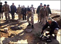 انتشلت عائلات كردية صباح أمس الثلاثاء رفات جثث لأقاربها من مقبرة جماعية عثرت عليها القوات الأمريكية أمس قرب كركوك حسب ما أكده مسؤول عراقي محلي أمس.