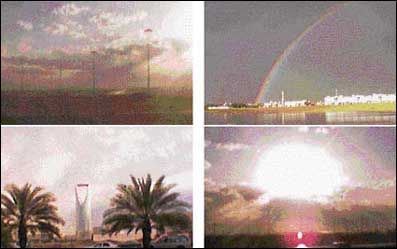 * خاص - الجزيرة: لم تقف الخسائر الناجمة عن مطر الأيام الماضية حائلاً دون رصد جماليات المطر، التي شكلت كرنفالاً بصرياً رصدته عدسة الزميل حسين فقيه. ليتبدى قوس قزح معانقاً مآذن المساجد وكأنما يخرج من كل مئذنة كرنفال لوني مبهج يؤكد عظم منح الرب عز وجل لنا ما يمتع ويؤكد الدهشة لتخرج (سبحان الله من ال.........