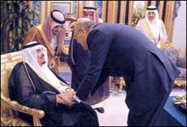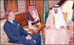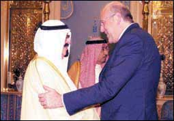 | * الرياض - واس: استقبل خادم الحرمين الشريفين الملك فهد بن عبدالعزيز آل سعود في مكتبه بقصر اليمامة امس دولة رئيس وزراء لبنان نجيب ميقاتي. وقد نقل دولته لخادم الحرمين الشريفين تحيات وتقدير فخامة الرئيس اللبناني اميل لحود كما حمّله أيده الله تحياته وتقديره لفخامته. وجرى خلال الاستقبال استعراض الاوضاع في لبنان والقضية الفلسطينية والوضع في العراق وعلى الساحات العربية والاسلامية والدولية اضافة الى بحث العلاقات بين ا.........