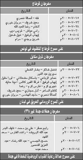 * أبها - جدة - بيروت - عبد الله الهاجري - فن -هناء حاج : تواصل لجنة التنشيط السياحي بعسير هذه الأيام سعيها جاهدة لتحديد اسم الفنان الرابع الذي يشارك في حفلات أبها الغنائية في صيف هذا العام. وعلمت فن من مصادرها الخاصة أن البحث لا يزال مستمراً عن الاسم الرابع، فيما تم تحديد أسماء الفنانين الثلاثة الذين سيحيون حفلات أبها من خلال حفلتين غنائية. والأخيرة وهذا ما تأكدنا منه ستكون للفنان محمد عبده بمفرده، حيث تعودت أبها دائماً بانفرادات أبو نوره على مسرح المفتاحة.. أما الحفلة الغنائية الأولى فستشهد عودة الفنان الكويتي عبد الله الرويشد مجدداً لأبها، فيما تعتبر هذه الحفلة هي المشاركة الأولى للفنان الشاب عباس إبراهيم الذي يشارك لأول مرة في أمسيات أبها الغنائية، أما الفنان الرابع فلم يتحدد اسمه حتى اللحظة فيما من المتوقع أن يكون من الأسماء (المكررة) التي شاركت مرات عديدة في حفلات أبها الغنائية. أما روتانا فستقوم بنقل هاتين الحفلتين عبر قناة روتانا خليجية يومي الأربعاء والخميس 6-6 و7-6-1426هـ من مسرح المفتاحة بأبها مباشرة. وتمكنت روتانا من كسب نقل حفلات جدة الغنائية عبر قناتها التي تأتي تلك الأماسي ضمن فعاليات مهرجان جدة غير لهذا العام. وقالت مصادر مطلعة (لفن) في روتانا إن حفلات جدة الغنائية لهذا العام 1426هـ ستشهد مشاركة نخبة من ألمع نجوم الغناء الخليجي من خلال أربع أمسيات غنائية. وعلمت (فن) أن روتانا هي التي قامت بالتفاوض مع الفنانين، وقد اتضحت بعد ذلك أسماء المشاركين وهم فنان العرب محمد عبده الذي لم يتخلف أبداً عن المشاركة في هذه الحفلات إلى جانب كل من: رابح صقر وعبد الله رشاد وعبد العزيز المنصور وراشد الفارس من داخل السعودية وهؤلاء قد شاركوا مسبقاً في هذه الحفلات بنسب متفاوتة. فيما سيشارك خليجياً كل من الفنان الكويتي عبد الله الرويشد والإماراتي علي بن محمد، فيما سيشارك للمرة الأولى الفنان ونجم الإمارات حسين الجسمي والقطري سعد الفهد. أما مفاجأة روتانا في حفلات جدة لهذا العام فهو مشاركة الفنان الشاب نايف البدر سعودي الجنسية، وهو من اكتشاف روتانا التي تتوقع له دورا فنيا مهما في قابل السنوات، بل إن وضع روتانا له ومشاركته كبار الفنانين الخليجيين إنما هو إثبات حقيقي لموهبة هذا الفنان. هذا وستقوم روتانا بنقل حفلات جدة عبر قناتها (روتانا خليجية) مباشرة. فيما نشير إلى أن (فن) قد أشارت في أحد أعدادها السابقة إلى أن روتانا تتفاوض لنقل حفلات جدة الغنائية وهذا ما تم بالفعل. وقد حصلت شركة روتانا مؤخراً على حقوق تنظيم ونقل مهرجانات صيف 2005م التي تقام في مختلف الأقطار العربية. حيث حصلت روتانا على حقوق تنظيم ونقل مهرجان قرطاج في تونس ومهرجان (ذوق مكايل لعام 2005م) في لبنان، ومهرجان جدة غير 2005 في السعودية. وتحدياً للمصاعب والأهوال التي مرّ فيها لبنان في الأشهر السابقة تتابع المهرجانات الثقافية والفنية نشاطاتها وتعلن واحدة تلو الأخرى، فبعد الإعلان عن مهرجانات بيت الدين وصور والجنوب جاء الإعلان عن مهرجانات بعلبك الدولية.. فقد نظمت رئيسة المهرجان السيدة مي عريضة مؤتمراً صحافياً أعلنت فيه فعاليات المهرجان لهذا العام، والذي يتصف بالطابع العالمي من كل نواحيه إن كان لجهة وجود فرق أجنبية أو عربية كبيرة وبغياب واضح لليالي اللبنانية، إلا أن مسك الختام مع السيدة وردة الجزائرية سيكون له طابع مميز عربياً وعالمياً. وأوعزت عريضة عن سبب غياب الليالي اللبنانية هذا العام عن بعلبك يعود إلى رغبة أبداها الفنان عبد الحليم كركلا منذ أشهر قليلة بعدم تقديم جديده الضخم هذا العام وتأجيله إلى العام المقبل 2006 بحيث يتسنى له القيام بالتدريبات اللازمة، وهو أمر كان واضحاً أنه لن يتاح له في هذه الفترة القصيرة، لكن سيعوض هذا الغياب الفنان زاد الملتقى مع فاديا طنب الحاج في: (إلى ديونيسوس، حيث ترافق الموسيقى إشعارا مختارة من نتاج: جورج شحادة، نادية تويني، واتيل) عدنان، وترافقه الأوركسترا الفرنسي ABS NOVA بينما هناك جوقة تدعى LE