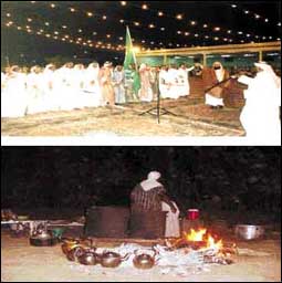 * تقرير وتصوير - قبلان الحزيمي - وادي الدواسر: لا يزال الأهالي في وادي الدواسر كبقية البلاد السعودية متمسكين بعادات وتقاليد الآباء والأجداد في مظاهر زواجاتهم ولم تؤثر عليهم مظاهر الحضارة والمدنية في تغيير هذه العادات على مر العصور بل هناك ربط جميل بين هذه العادات والتقاليد الأصيلة والتطور الحضاري الباهر الذي تشهده المحافظة وإن كان هناك بعض المفارقات الطفيفة بين احتفالية زواج الأمس وزواج اليوم فهي نتيجة الاختلاف في الحياة الاجتماعية التي كانت بسيطة في جميع صورها ثم تقدمت مع التقدم الهائل الذي تشهده بلادنا في شتى المجالات ولم تزل روح الترابط والتكافل والتواصل سمة من سمات هذه الأفراح. ففي الماضي كانت مراسم الزواج تبدأ بسيطة بتحديد الفتاة التي غالباً أن الشاب لا يختارها من خارج بنات القبيلة ثم تبدأ الخطبة من ولي أمرها وبعد الموافقة ? وعدم وجود الحجير من أقربائها ? يقوم أهل العريس بإرسال ما يسمى في ذلك الوقت بِ(الدفع) وهو المهر في عرفنا الحالي ويكون بسيطاً في محتواه وتنوعه فلا يكاد يتعدى في مجمله نقود بسيطة مع بعض الزل من الفرش وبشت للعروس ووالدها ووالدتها وبعد أيام قلائل جداً يعلن يوم الفرح (الزواج) فتتمم مراسمه للرجال بذهاب أهل العريس وأقاربه وجيرانه لوالد العروس فيما يسمى في ذلك الوقت بِ(الدَخَلِيّه) ويكون ذلك عصراً نظراً لعدم وجود الأنوار كما هو في الوقت الحالي ويعقبه في ضحى اليوم التالي إرسال ما يسمى بِ(الضعن) من بيت العروس إلى بيت العريس وهو كل ما تحتاجه العروس من فرش وآنية منزلية بسيطة ويكون ذلك في احتفالية مصحوبة بالطبل من النساء ثم يقيم العريس احتفال آخر في عصر اليوم نفسه يحضره الجميع ، وفي الوقت الحاضر اختلف الأمر قليلاً فبيت الزوجية يكون تجهيزه بالكامل من اختصاص العريس سوى ما يتعلق ببعض التجهيزات الخاصة التي يقوم بها بعض قريبات العروس. وتبدأ مراسيم الزواج في الوقت الحالي بوادي الدواسر بالخطبة التي غالباً ما يسبقها رؤية العروس من قبل قريبات الزوج ولا يرى الخاطب قرينته إلا بعد القران وفي بيت الزوجية ثم يتم تحديد يوم الفرح وليلة الزواج باتفاق بين الأسرتين الذي غالباً ما يكون في أيام الإجازات. ولا تزال تكلفة الزواج مرتفعة نسبياً وإن كان بعض مشايخ القبائل قد سنوا سنة حسنة بتحديد المهر بما لا يتجاوز خمسين ألف ريال. وفي ليلة الزواج يجتمع الأهل والأقارب والأصدقاء والمدعوون في ليلة بهيجة يقام فيها احتفال بهي في إحدى الساحات المجاورة لمنزل العريس وقليل ما يكون في قصور الأفراح ، تنصب في هذا الاحتفال أعمدة الزينة والإنارة ويفرش الزل وتوقد النار وتعد القهوة والشاي عليها في موقع الاحتفال.
