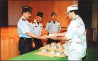 * الرياض - محمد الناهض: احتفلت مدرسة سلاح الإشارة بالحرس الوطني صباح أمس الأربعاء بتخريج دورتي ضباط الإشارة التأسيسية رقم 1/ 2-1426هـ ودورة تأسيسية الإشارة للأفراد الاستثنائية رقم 1 - 1426هـ ودورة الفرد الأساسي رقم 1 - 1426هـ بحضور قائد سلاح الإشارة بالنيابة اللواء محمد بن خالد الناهض. وقد بدئ الحفل بآيات من الذكر الحكيم، بعد ذلك ألقى قائد مدرسة سلاح الإشارة العميد ركن عبدالعزيز الفوزان كلمة بارك فيها للخريجين وحثهم على الانضباط والحرص على أداء الأمانة بكل تفانٍ وإخلاص، وتمنى لهم كل توفيق في حياتهم العملية. ثم ألقيت كلمة الخريجين، بعدها أعلنت النتائج العامة للدورات.