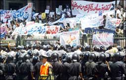 * القاهرة - الوكالات: قالت مسؤولة في حزب الغد المصري المعارض إن قوات الأمن المصرية أطلقت النار على أحد أعضاء الحزب (19 عاما) وإصابته في قدمه أثناء محاولته تعليق ملصقات للحز.........