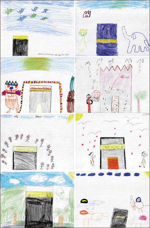 كان (أبرهة) ملكاً من ملوكِ الحبشة الظالمين، وكان قد سمع أن لأتباع إبراهيم عليه السلام بيتاً يعبدونَ فيه الله ويُعظّمونه، هو الكعبة. كره (أبرهة) أن يكون ذلك، فبنى معبداً ليصرف الناسَ عن الكعبة، فلم يلتفت إلى معبده أحدٌ ولم يزره أحدٌ، وظل المعبد الجديد مهجوراً. حينئذ قرّر (أبرهة) أن يهدمَ الكعبةَ حتى لا يجد أتباع إبراهيم والمؤمنون بملّته مكاناً يذهبون إليه غير معبده. وكان (لأبرهة) جيشٌ عظيمٌ لا مثيل له في قوّته، وكان في جيشه مجموعةٌ من الفيلة الشرسةِ القوية يتزعمها فيلٌ هائلُ الحجم قويُّ الجسدِ. أمر (أبرهة) جيشه بأن يستعدّ، وتقدّم الجيشُ متجهاً إلى الجزيرةِ العربية لهدمِ بيت الله العظيم. أثناء تقدم الجيش، تعرّض له أكثُر من جيشٍ للعربِ، فهزمهم (أبرهة)، وأخيراً وصل إلى حدودِ مكة المكرمة. أدركَ العربُ أنهم لا يستطيعون مقاومة هذا الجيش العظيم فلجؤوا إلى الله سبحانه ودعوه أنْ يصدَّ عن بيته الكريمِ هذا الجيشَ المهاجمَ. .. وجاء صباحُ الهجوم، وأمر (أبرهة) الفيلةَ أن تتقدمَ، ولكن الفيلةَ لم تتحرك من مكانها.. ضربوها بالسياطِ لتهجم، ولكن الله تعالى أراد ألاّ تتحرك الفيلة من مكانها فلم تتحرك. لم تكد تمضي دقائقُ حتى فوجئ جيشُ (أبرهة) بالسماء تمتلئ بطيرٍ غريبٍ (طير أبابيل)، وانقضّتِ الطيرُ وهي تحملُ في مناقيرها حجارةً من الجحيم. وألقت الطيرُ ما تحمله على الجيشِ المهاجمِ، وتطايَر الجيشُ وتمزّقت صُفوفه وهلك جنده وضاعت قوَّته. أما الفيلةُ فقد انكفأت هاربةً تجري في الصحراء.. وهكذا حمى الله بيتَه الكريمَ وصدَّ عنه العدو. وفي ذلك العامِ، الذي سمّاه الناس (عامَ الفيل)، وُلِدَ رسول الله صلى الله عليه وسلَّم. 6 - لولوة بندر: أنا أتمنى أن أذهب إلى مكة.