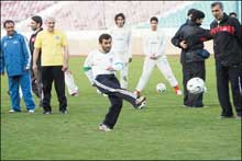 قام الرئيس الايراني محمود أحمدي نجاد بزيارة مفاجئة للمنتخب الوطني الإيراني لكرة القدم خلال حصة تدريبية أمس الثلاثاء وشارك اللاعبون في التدريبات وأحرز.........