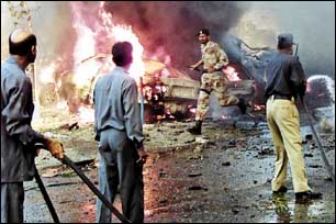 أسفر تفجير انتحاري بسيارة مفخخة عن مقتل 5 أشخاص بينهم دبلوماسي أمريكي بالقرب من القنصلية الأمريكية في مدينة كراتشي جنوب باكستان أمس، قبل يومين من زيار.........