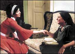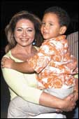 الممثلة المصرية ليلى علوي وهي تحمل ابنها بالتبني خالد في أول يوم من انطلاق فيلمها الجديد (ألوان السماء السبعة)..>أ.ف.ب